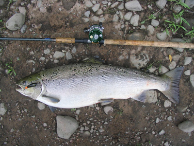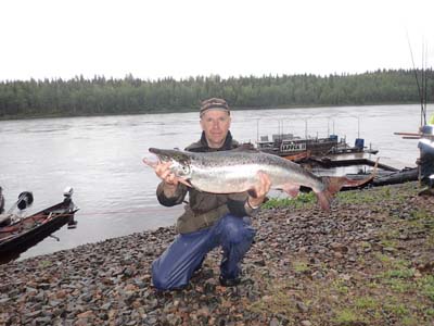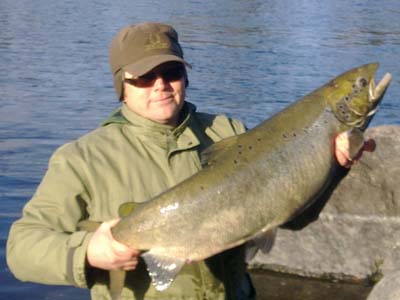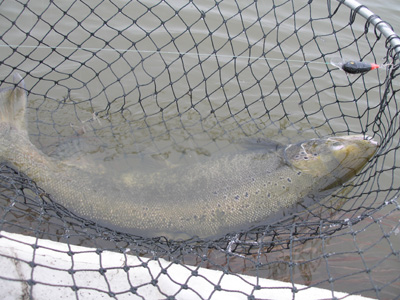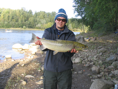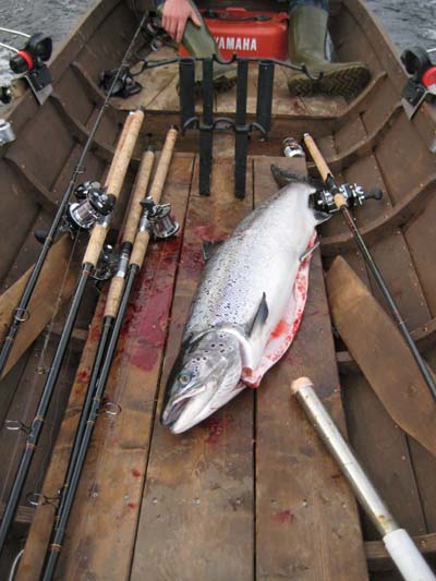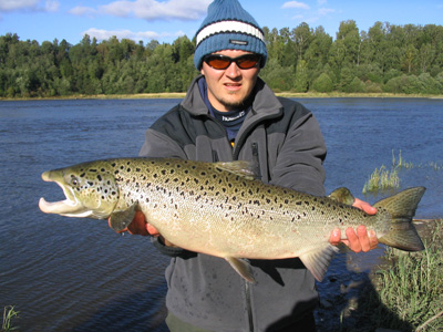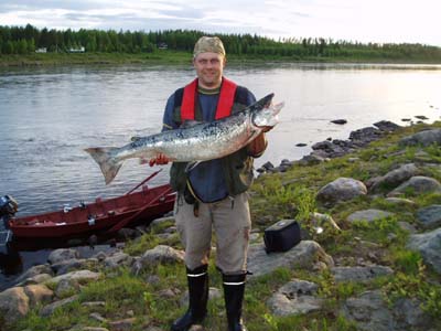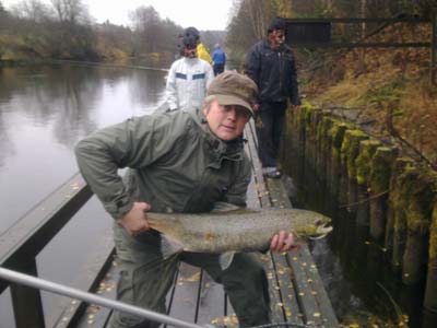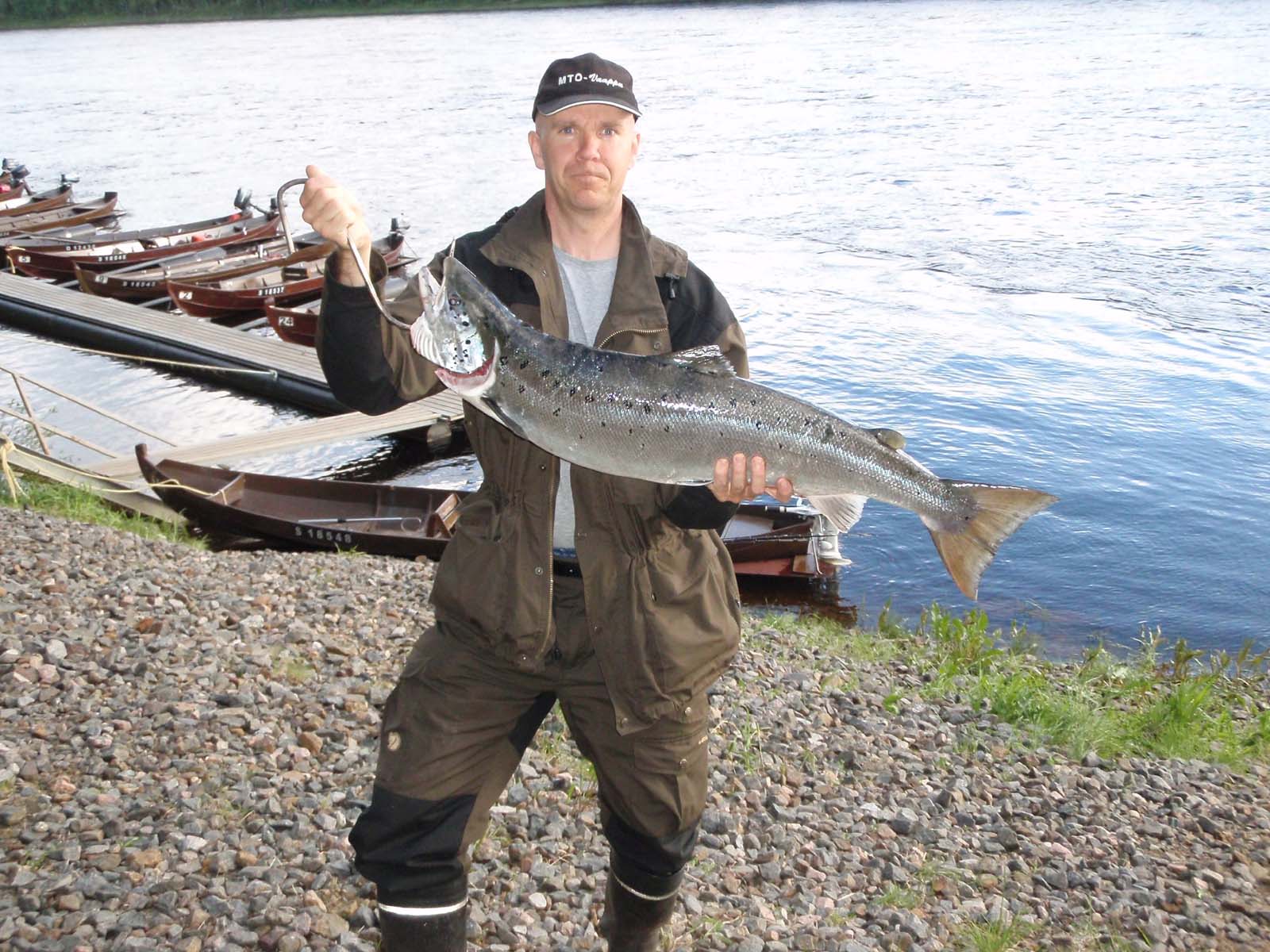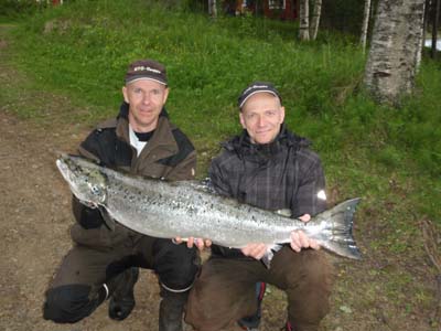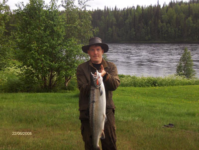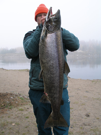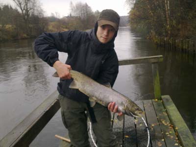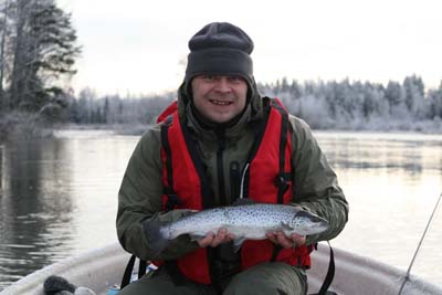 "Hannu Hanhi" lähti lohenpyyntiin ensikertaa. Ehdin soutamaan 5 minuuttia ja kaverille 13,5kg.