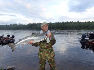 Kesä 2014 ja Tornionjoki suo antejaan. Olavi ja 11,1kg marjas.